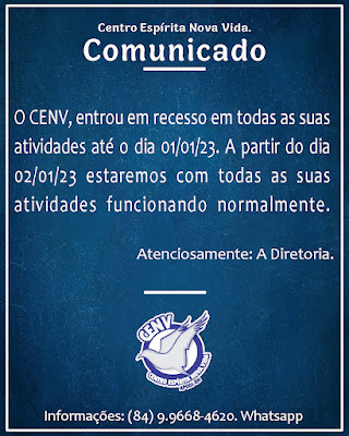 Participe conosco dos nossos eventos semanais, estamos de portas abertas para receber você, a partir das 19h30min no Centro Espírita Nova ...